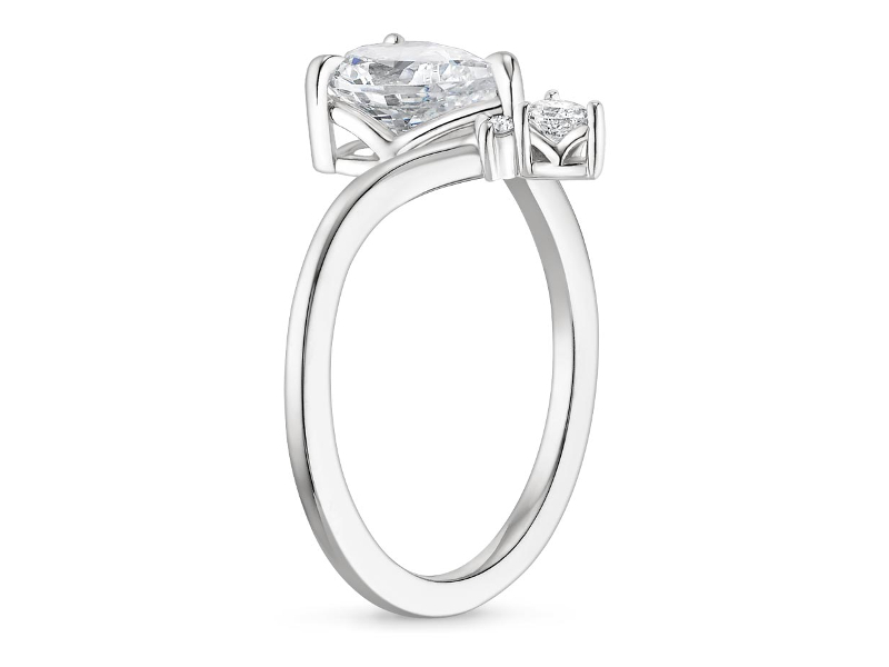 Curved Chevron ☆ Pear-Shaped Diamond in Claw Prong Setting with Side Stones, Curved Band