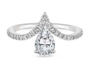 Curved Chevron ☆ Pear-Shaped Diamond in Claw Prong Setting with Side Stones, Pavé Curved Band Like Loading...
